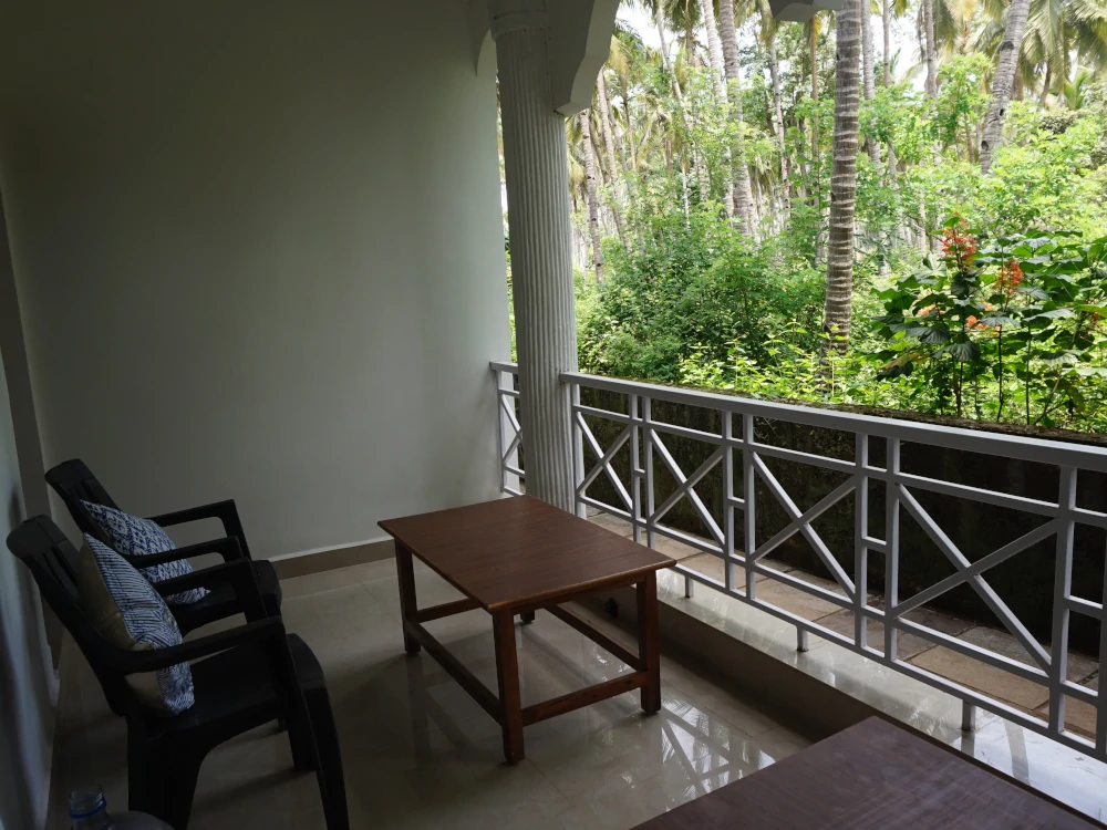 Every room has a balcony with chairs and a table. Palm Heaven is located on a few minutes walking from beautiful Palolem beach, is close to shops, restaurants and bars and is the perfect base to explore and experience the peaceful susegad style of South Goa.
