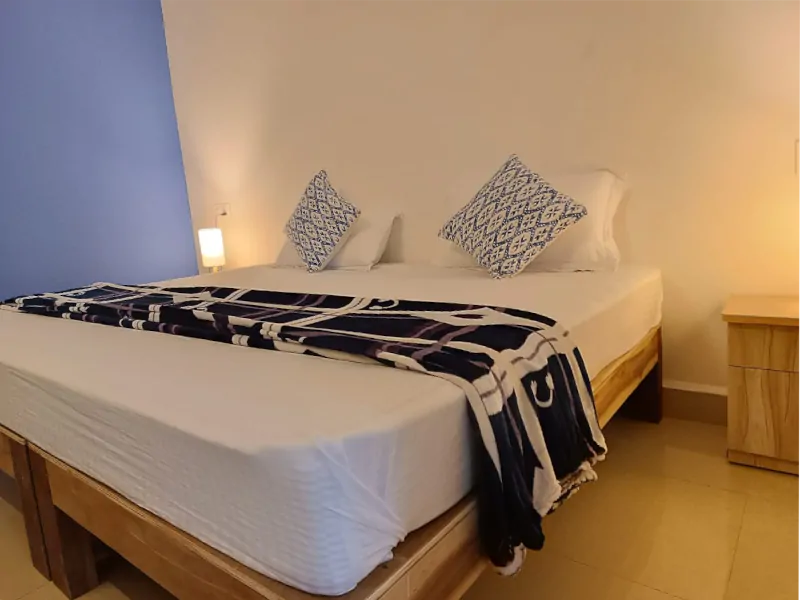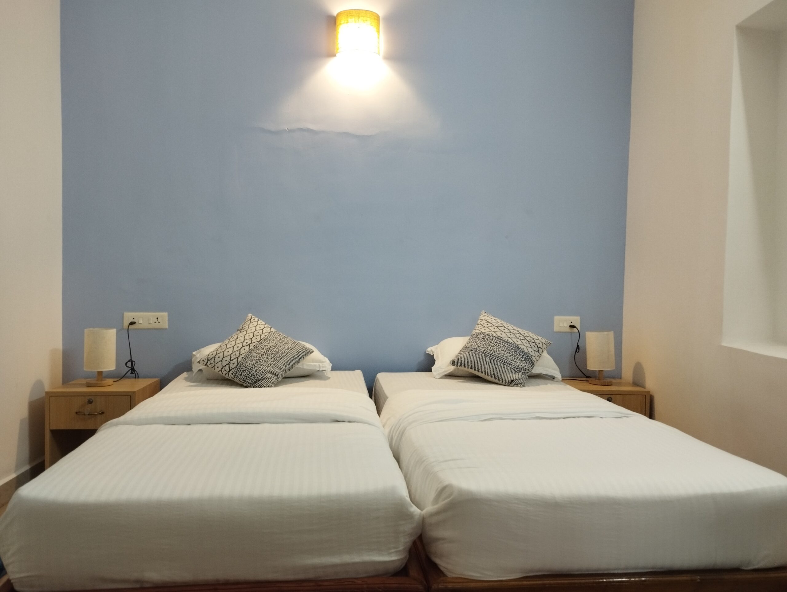 - Amenities: Air Conditioning (AC), Balcony, Bedlamps, Chairs, Complimentary safe parking, Fan, Free Wi-Fi, Hot water shower, Private bathroom, Table, Towels, Wardrobe